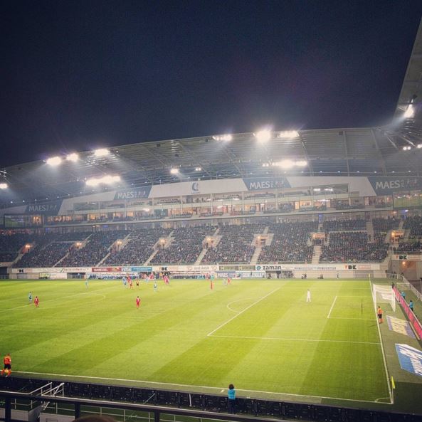 Vanaf onze plaats zag de match er toch enigszins anders uit. Wij zaten in tribune 3 vak 327. Met links, onder en boven ons supporters van Gent. Rechts supporters van Brugge.