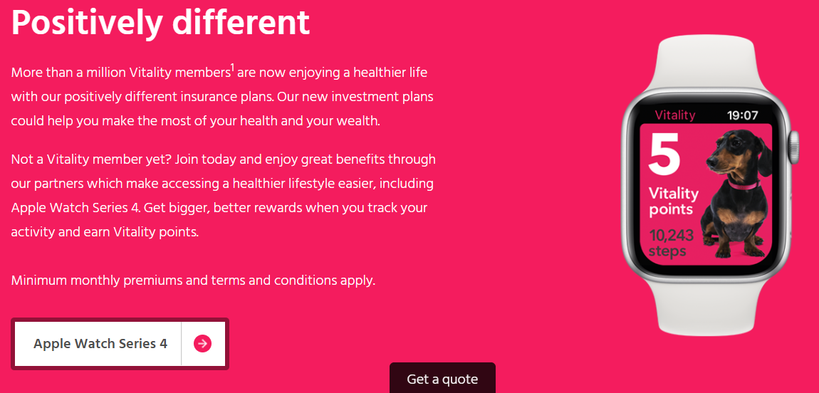 Vitality is een verzekeraar uit de UK die zichzelf positioneert als: ‘The largest incentive-based wellness program in the world‘. Een mondje vol. Ze hebben een model ontwikkelt waarmee ze aan de hand van partnerships hun klanten ( = mensen die een verzekering afsluiten bij hen) voordelen kunnen bieden en hen belonen voor een gezonde levensstijl.