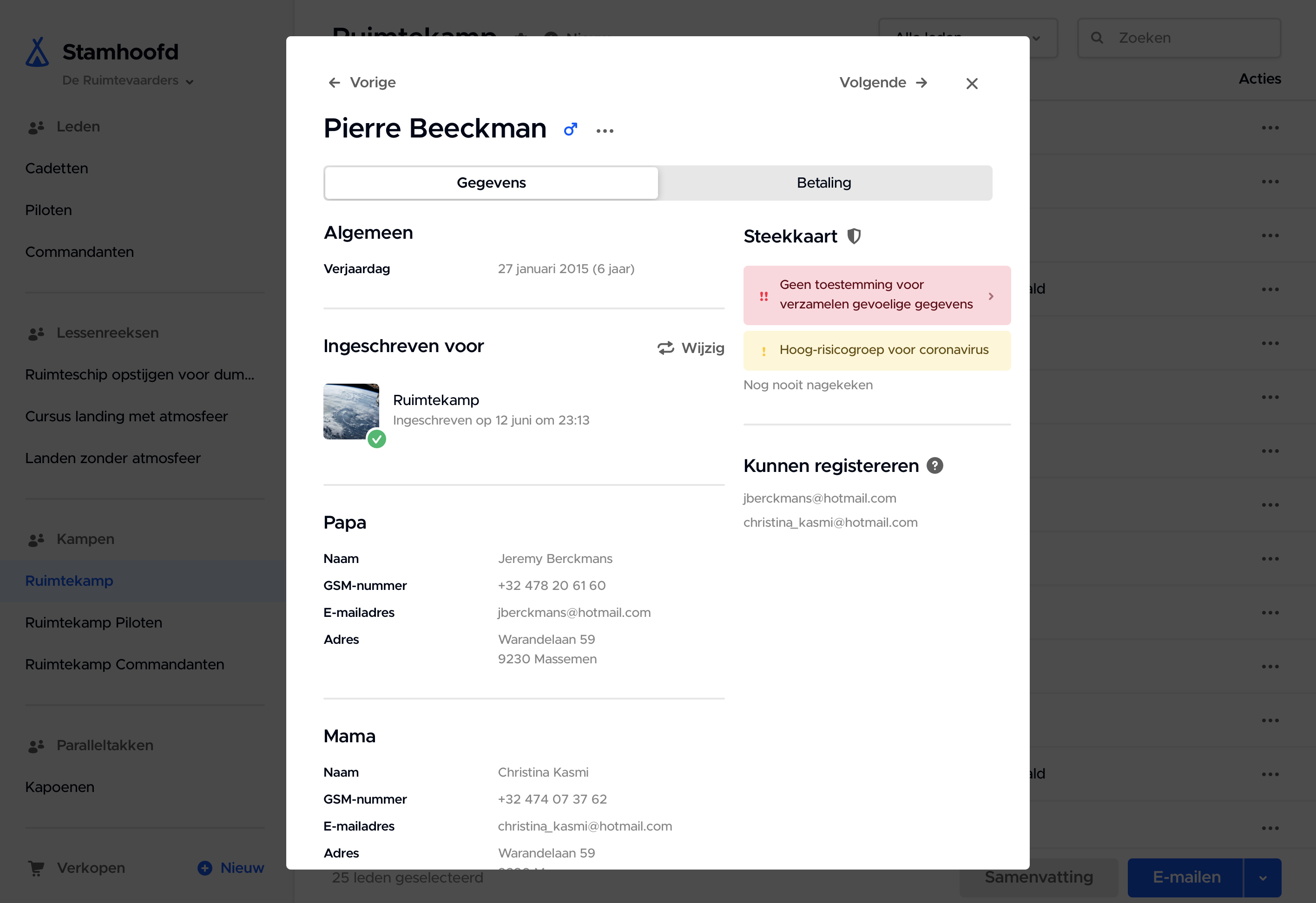 Voor ons is vooral het gebruiksvriendelijke onderhoud van het platform en het eenvoudig maar goed werkende overzicht fantastisch. In het verleden werkten we met Google Forms en Excel maar daarbij liep het vaak fout als we met meerdere aanpassingen deden. In Stamhoofd is alles duidelijk en wordt de input door de leden zelf gedaan wat dubbel werk vermijd. Dat het allemaal nog eens GDPR-proof is, maakt het af.