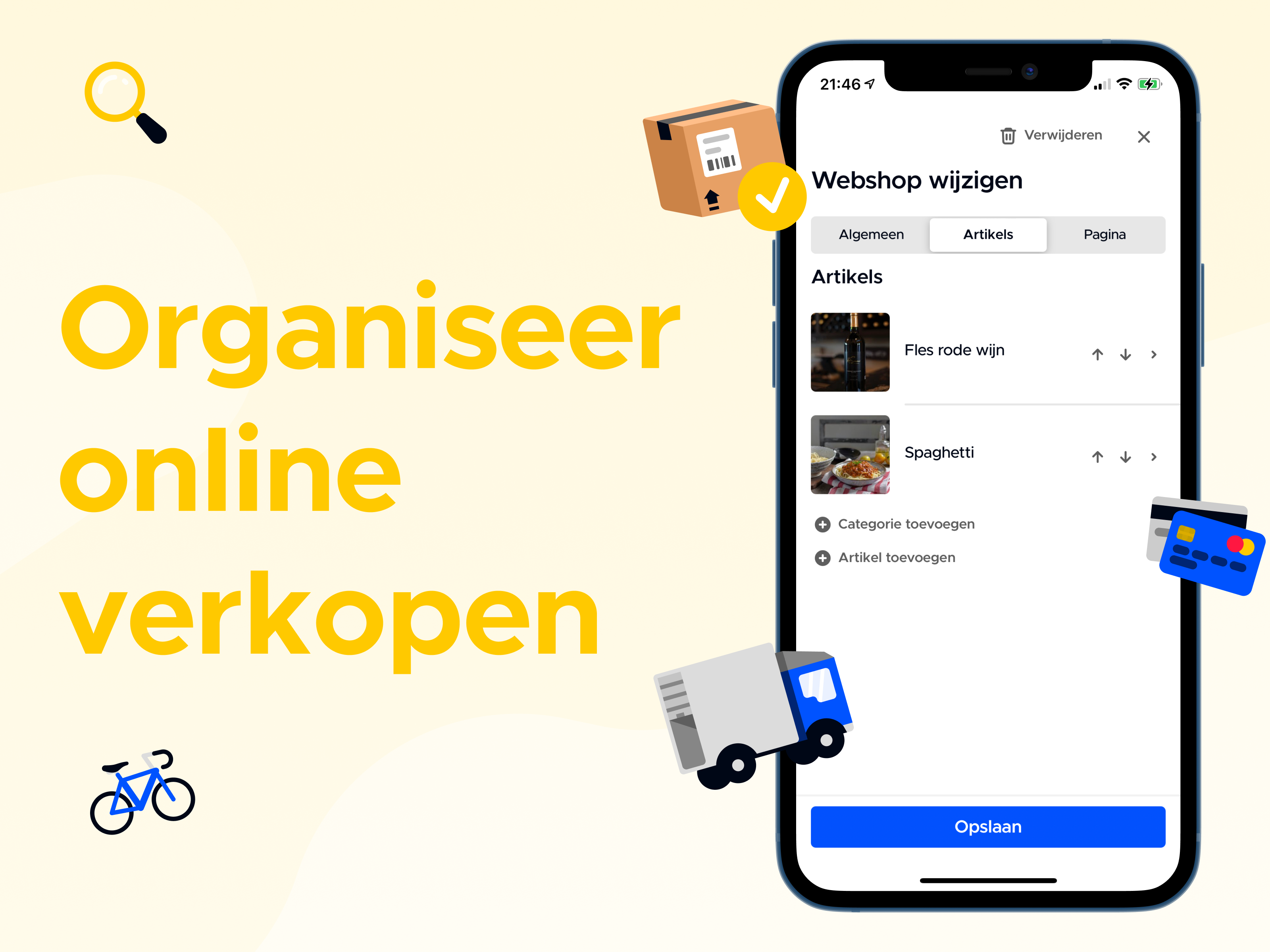 - Webshop: voor € 59 heb je een webshop om jouw benefiet, take-away eetfestijn, crowdfunding… online te organiseren.