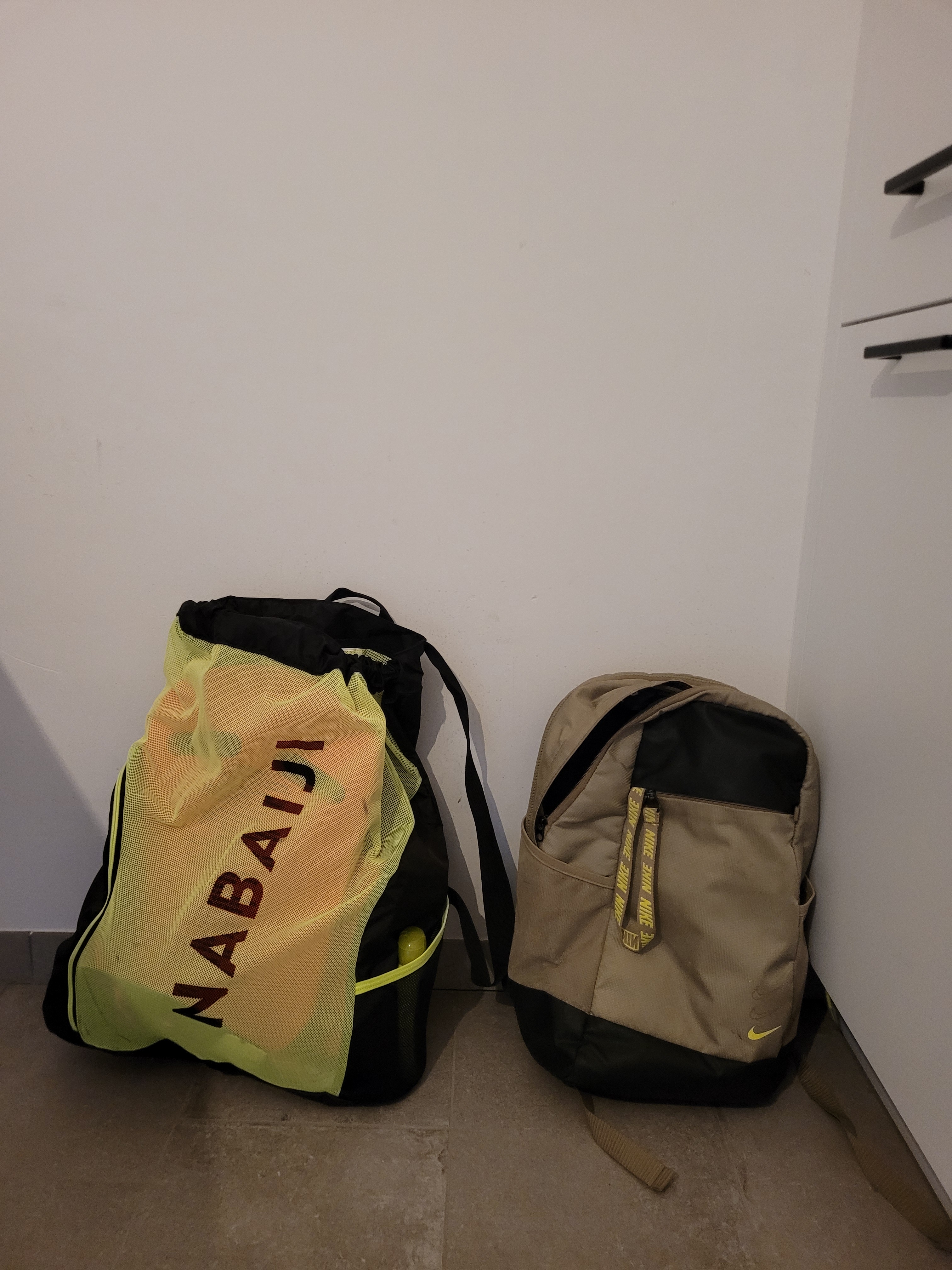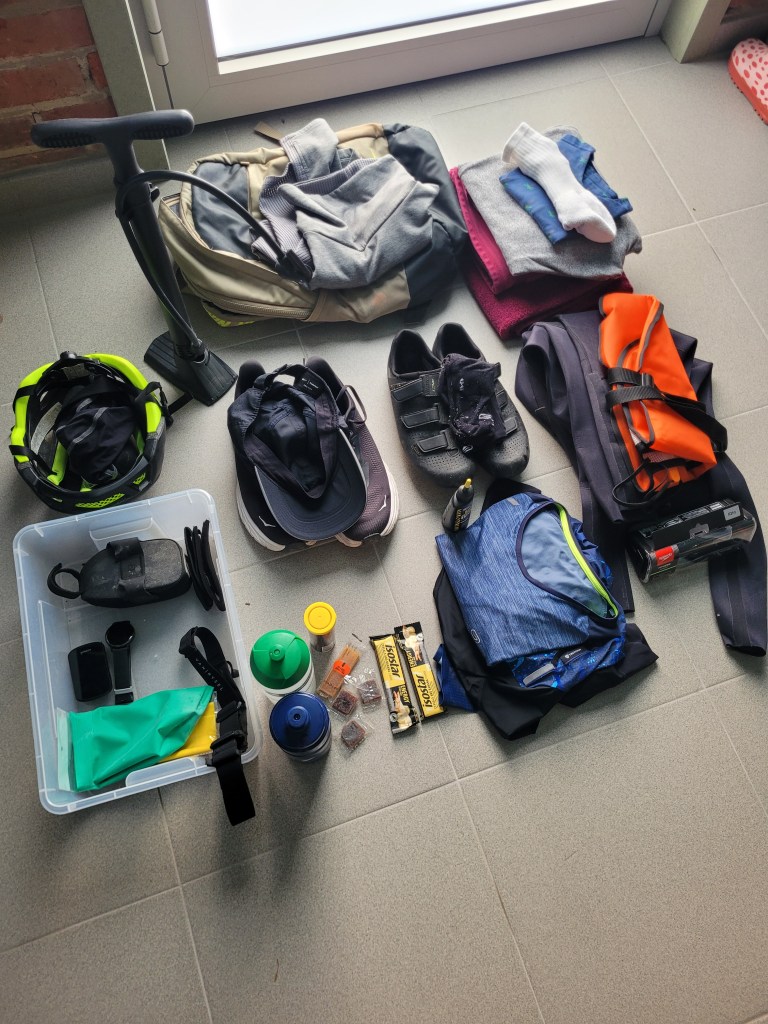Of toch een deel van het materiaal. Zwempak, fiets, alles van kledij,… eisen ook hun plek. Een triatleet heeft niet alleen veel tijd maar ook veel plaats nodig.